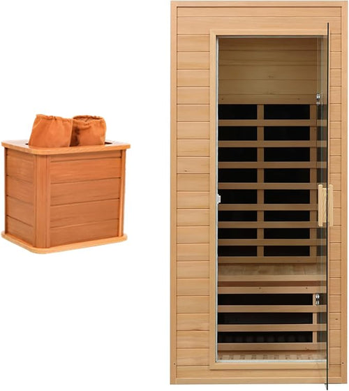 1 Person Infrared Sauna, Low EMF Infrared Saunas for Home, Hemlock Wooden Far Infrared Sauna Indoor, 1,200watt, Home Sauna Spa, with Bluetooth Speakers, LED Light, Smart Display
