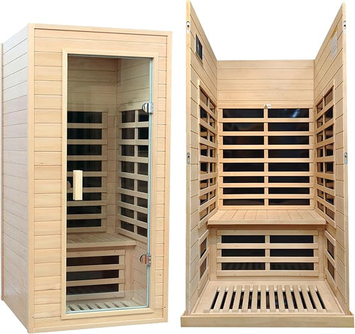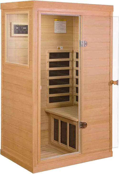 1 Person Infrared Sauna, Home Sauna, Hemlock Wood Far Infrared Sauna, 1,200watt, Low EMF FAR Infrared with Bluetooth, LCD, LED Lights, for Home Indoor