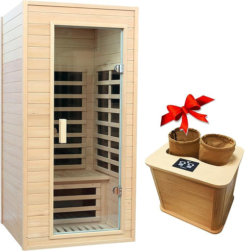 1 Person Infrared Sauna, Infrared Sauna Indoor,Home Sauna Low EMF Infrared Saunas, 1050Watt, Canadian Hemlock, Smart Display, 2 Bluetooth Speakers, Eye-Protection Reading Lamp